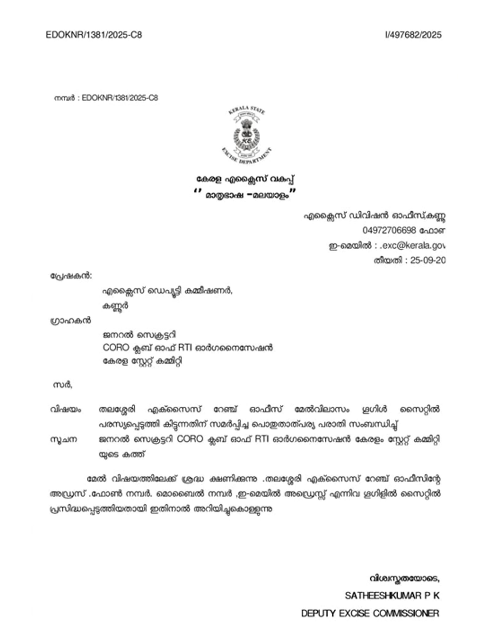 പൊതു സമൂഹത്തെ രണ്ടാം കിടക്കാരായി കാണുന്ന പൊതു സേവകരിൽ ചിലർ പൊതു സമൂഹത്തെ ഒന്നാം കിടക്കാരായി കാണേണ്ടതും, നികുതി ദായകരാൽ മാത്രമാണ് ഈ ജനാധിപത്യ രാജ്യത്ത് തങ്ങളുടെ നില നിൽപ്പും, അംഗീകാരവും എന്നത് മനസ്സിലാക്കി പൊതു സമൂഹത്തിന്റെ അവകാശം നിഷേധിക്കുന്നവരിൽ ചിലർ അത് പാടെ നിറുത്തൽ ചെയ്യേണ്ട കാലം അതിക്രമിച്ചിരിക്കുന്നു എന്ന് ഞങ്ങൾ ഇവിടെ അടിവരയിട്ട് തന്നെ വെളിപ്പെടുത്തട്ടെ!!
